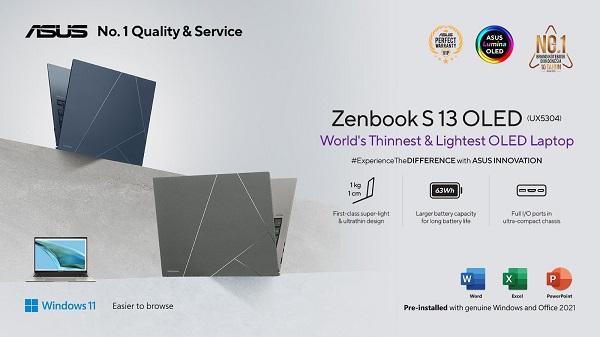 ASUS Zenbook S13 OLED UX5304 hadir dengan tampilan ultraportable dengan sistem keamanan solid dari US military-grade yang mampu menjaga rangka bodi hingga komponen bagian dalam tetap aman meski dalam tampilan yang tipis dan ringan.